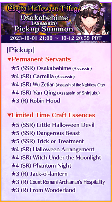 "Csejte Halloween Trilogy Pickup Summon" Schedule: