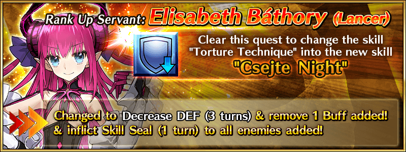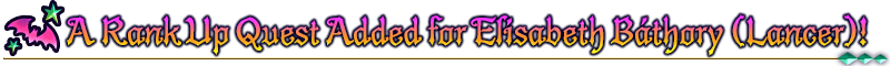 A "Servant Rank Up Quest" to strengthen "★4 (SR) Elisabeth Báthory (Lancer)" will be permanently added to Chaldea Gate.