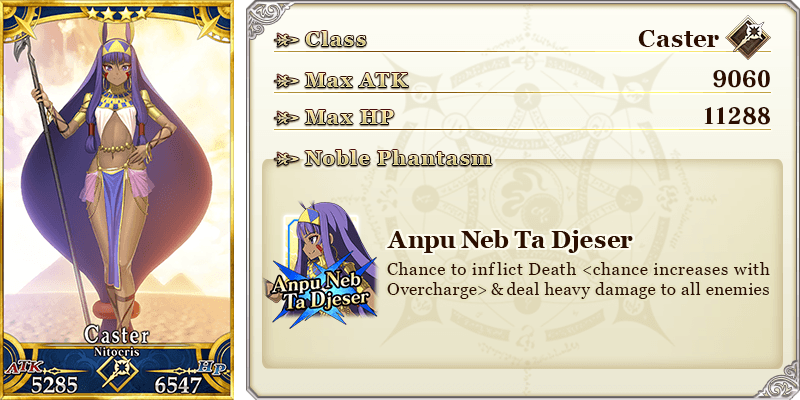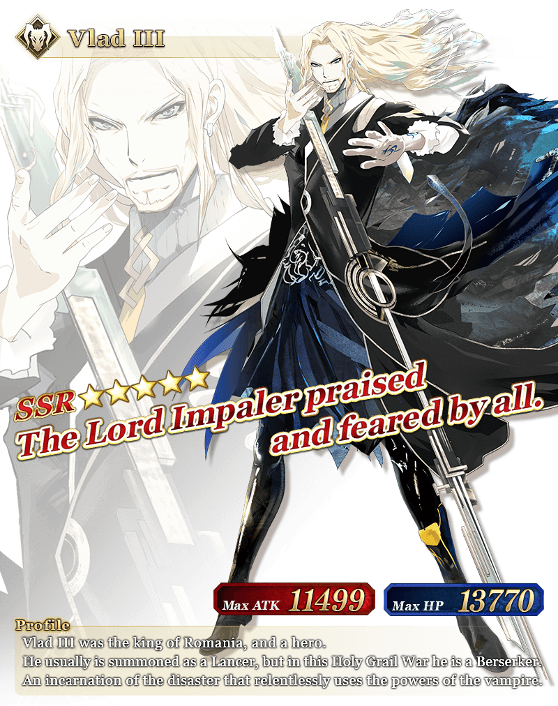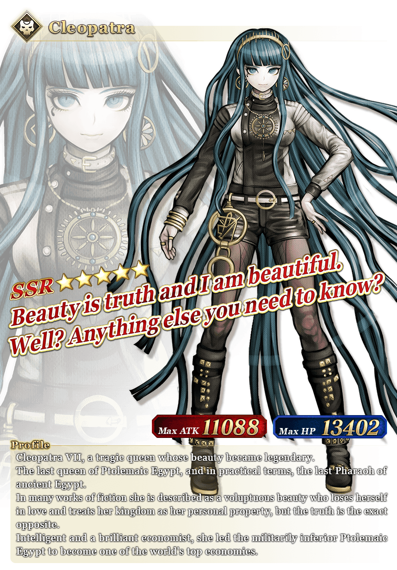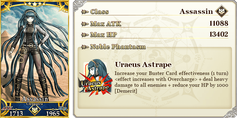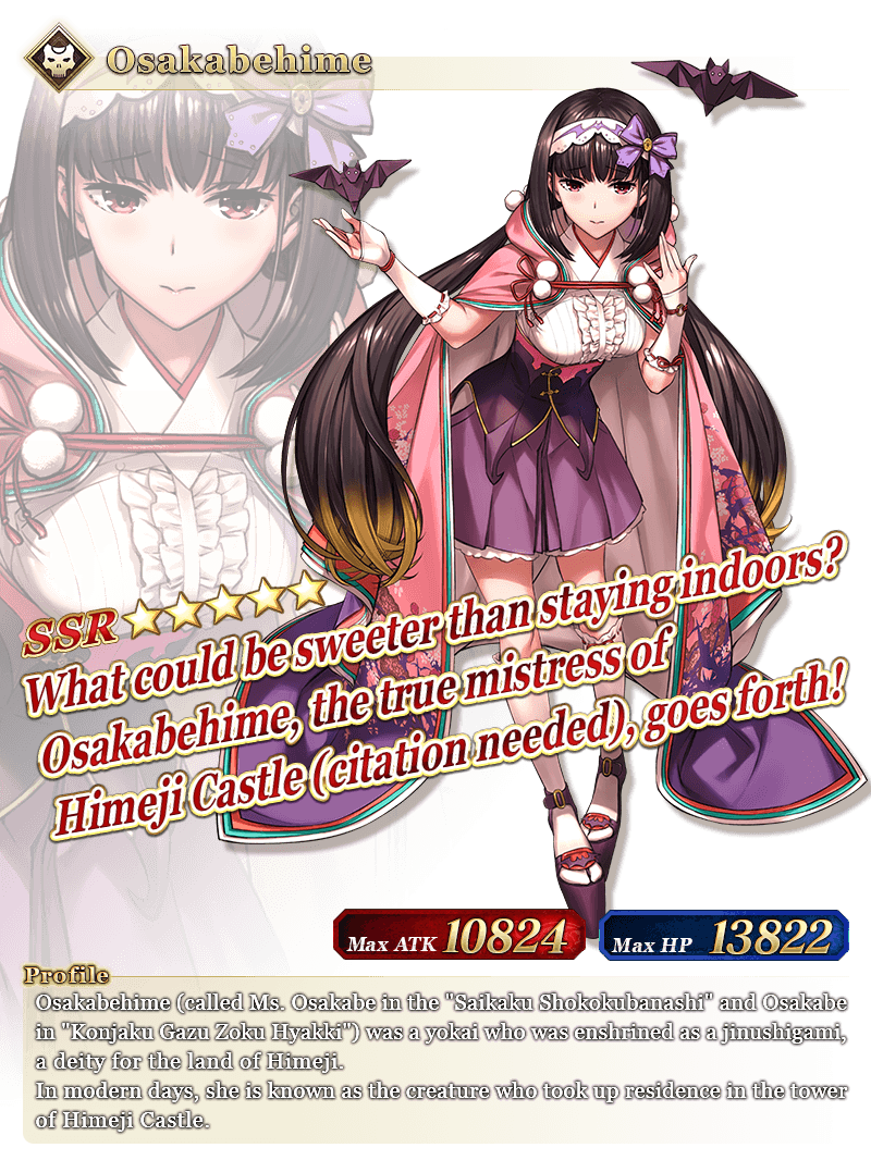 About Featured Servants: * The following Servant(s) will only be summonable from their specific Pickup Summons. Please confirm the Pickup Servant before summoning. - ★5 (SSR) Cleopatra * The following Servant(s) will not be added to Story Summon after the Pickup Summon period ends. - ★5 (SSR) Cleopatra * The following Servant(s) will continue to be available through Story Summon after the Pickup Summon period ends. - ★5 (SSR) Osakabehime (Assassin) - ★5 (SSR) Vlad III (Berserker) - ★4 (SR) Elisabeth Báthory (Lancer) - ★4 (SR) Vlad III (EXTRA) (Lancer) - ★4 (SR) Nitocris (Caster) - ★4 (SR) Carmilla (Assassin) - ★4 (SR) Wu Zetian (Assassin of the Nightless City) - ★4 (SR) Yan Qing (Assassin of Shinjuku) - ★4 (SR) Ibaraki-Douji (Berserker) - ★4 (SR) Penthesilea (Berserker of El Dorado) - ★4 (SR) Tamamo Cat - ★3 (R) Gaius Julius Caesar - ★3 (R) Robin Hood - ★3 (R) Kiyohime (Berserker) * The name displayed for Servants whose True Names are hidden will change based on story progression. In some cases, the name displayed for their Noble Phantasm will also change. * Servants added to Story Summon through story progression will not be summonable. Please be sure to confirm the lineup before summoning.