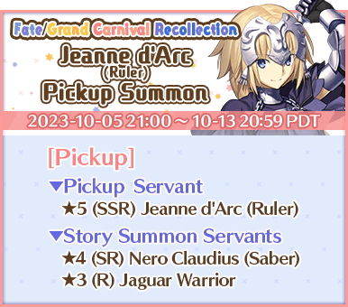 * The following Servant(s) will continue to be available through Story Summon after the Pickup Summon period ends.