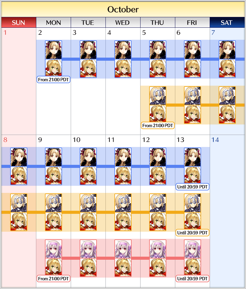 "Fate/Grand Carnival Recollection Pickup Summon" Schedule: