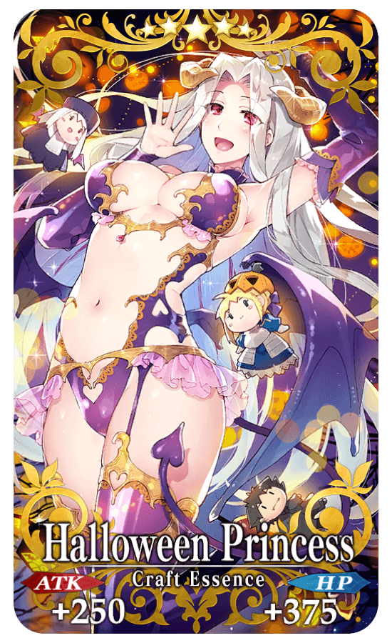 ★★★★★SSR Halloween Princess ATK 250 (MAX: 1000) HP 375 (MAX: 1500) Skill Increase NP Strength by 15% & begin battle with NP charged at 30% for yourself |