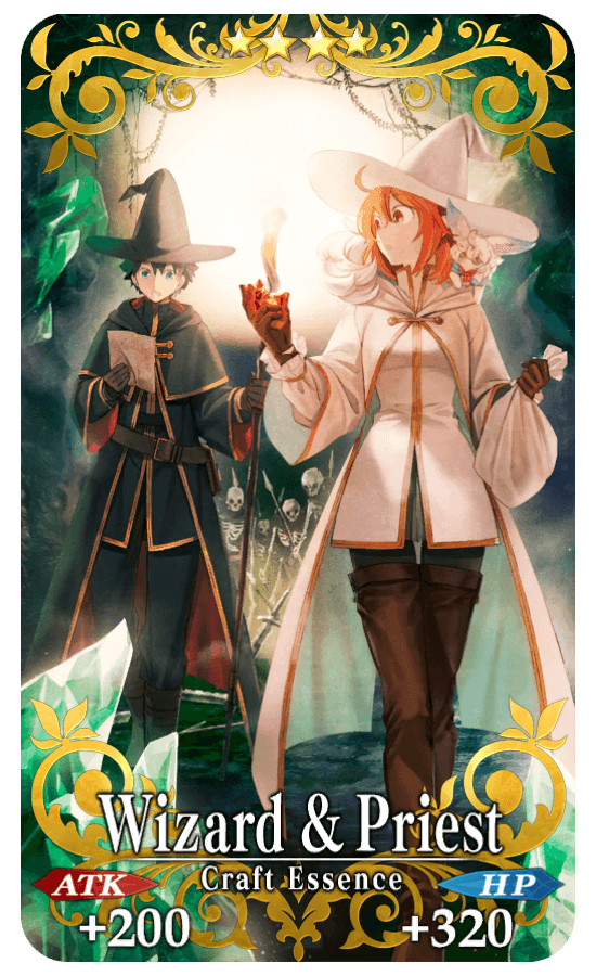 ★★★★SR Wizard & Priest ATK 200 (MAX: 750) HP 320 (MAX: 1200) Skill Increase NP Strength by 15% & HP Recovery amount by 10% for yourself |