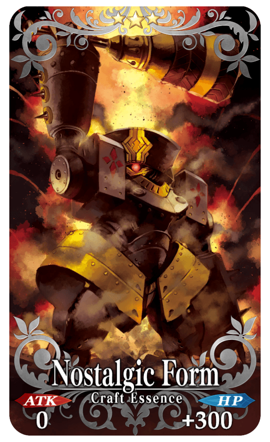 ★★★R Nostalgic Form ATK 0 HP 300 (MAX: 1500) Skill Increase DEF & Buster Card effectiveness by 3% for yourself |