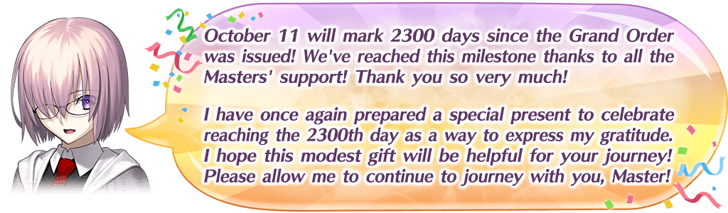 The presents will be sent to your Present Box on the first login between 2023-10-11 21:00 - 10-12 20:59 PDT (GMT -7).