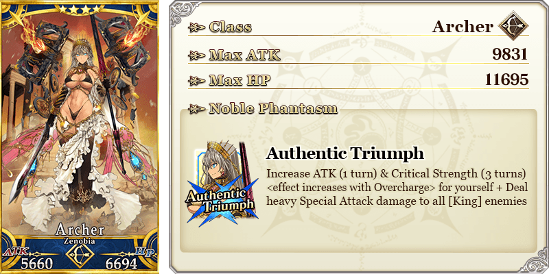 ★★★R Protagonista ATK 100 (MAX: 500) HP 160 (MAX: 800) Skill Gain 1 C. Star each turn & increase NP Gain by 5% for yourself + Increase Magic Sesame Seeds amount per drop by 1 [Event Only]