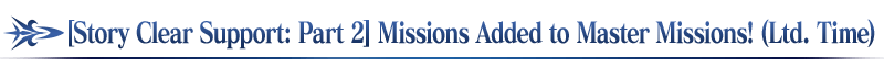 During the period below, limited time "[Story Clear Support Campaign: Part 2] Missions" will be added to the "Ltd. Time" tab on the "Master Missions" screen.