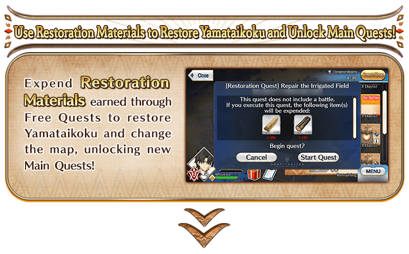As you progress through the Main Quest within this event, "Restoration Quests" to rebuild Yamataikoku will appear.