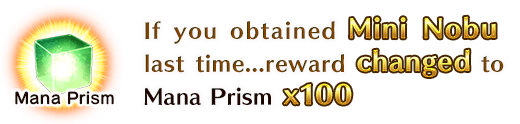 If you claimed an Event Reward Command Code in the original 2022 Limited Time Event "Super Ancient Shinsengumi History GUDAGUDA Yamataikoku 2022", the equivalent rewards will be changed to a Rare Prism or Mana Prisms.