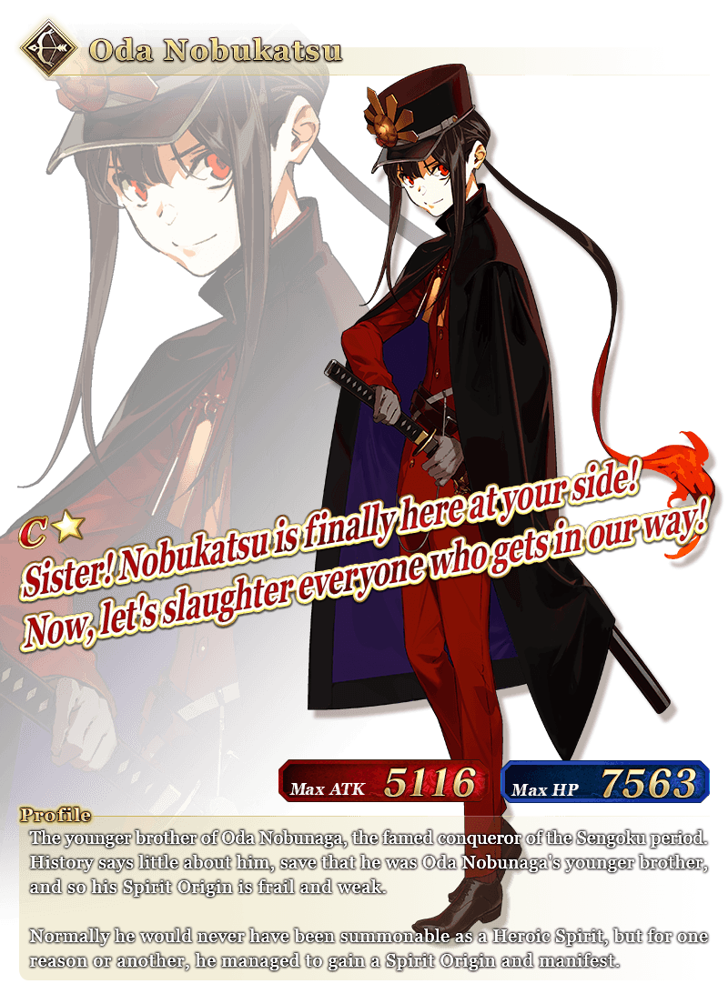 * You will be awarded 15 "★1 (C) Oda Nobukatsu" Servant Coins each time you obtain a copy of "★1 (C) Oda Nobukatsu".