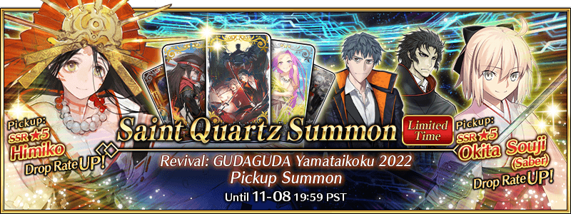 * The following Craft Essence will also be available from "Limited Time Revival: GUDAGUDA Yamataikoku 2022 Friend Point Summon" until 2023-11-08 19:59 PST (GMT -8).