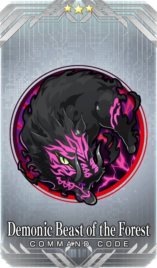 ★★★R Demonic Beast of the Forest Skill Inflict Curse (500 damage, 3 turns) to a single enemy when attacking with the engraved Card |