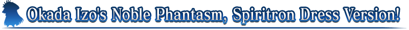 See "★3 (R) Okada Izo" with the Spiritron Dress "Awesome Dapper Suit" equipped in an exclusive video of his Noble Phantasm, available on YouTube!