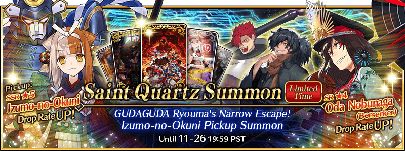 "GUDAGUDA Ryouma's Narrow Escape! Izumo-no-Okuni Pickup Summon" Details: