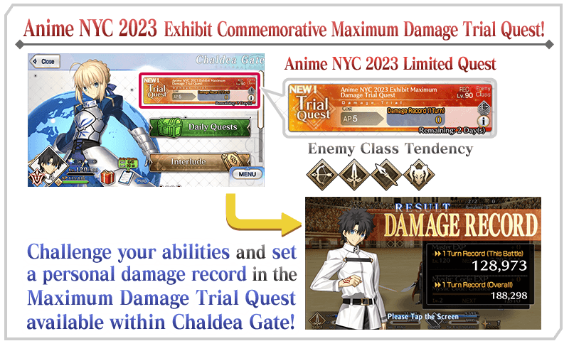 To commemorate our booth exhibit at Anime NYC 2023, a Maximum Damage Trial Quest will be available within Chaldea Gate for a limited time!