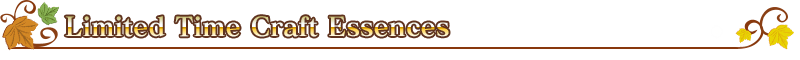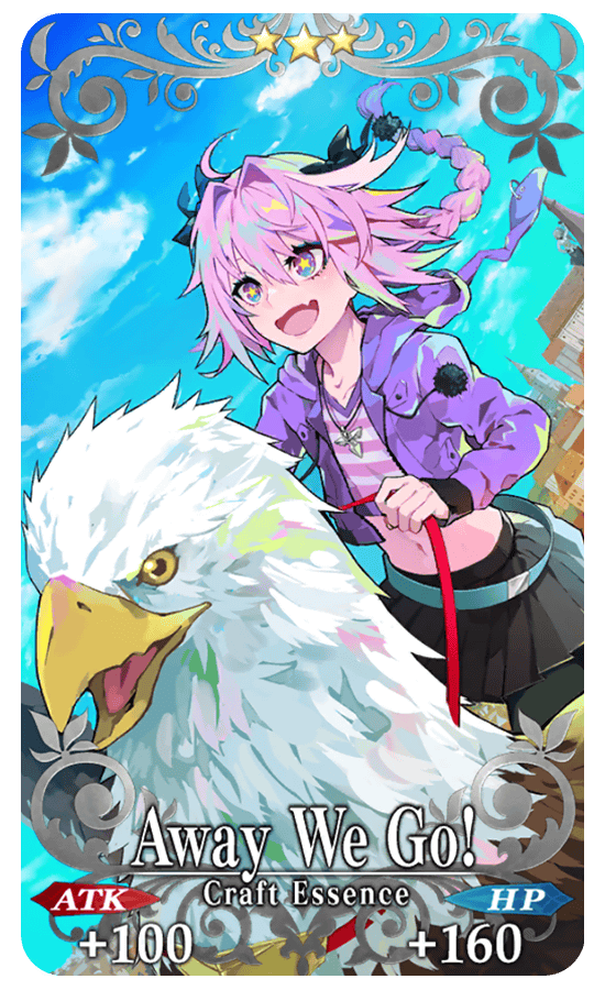 About Featured Craft Essences: * The following are the only Limited Time Craft Essences available from this Pickup Summon. Please note that no other Limited Time Craft Essences will be available. - ★5 (SSR) Distant Pilgrimage - ★4 (SR) Moment of Bliss - ★3 (R) Away We Go! * The following Craft Essence(s) will also be available from Friend Point Summon for the duration of the Pickup Summon period. - ★3 (R) Away We Go! * The following Craft Essence(s) will be automatically burned if you have ★3 (R) Craft Essences included in your Automatic Burning settings. Please check your settings before summoning. - ★3 (R) Away We Go!