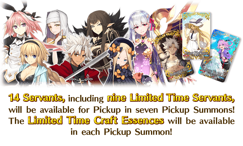 During the Pickup Period, the Pickup Servants and Pickup Craft Essences will have an increased drop rate!