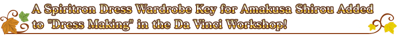 * Please note that although it is possible to obtain the Spiritron Dress Wardrobe Key even if you do not have "★5 (SSR) Amakusa Shirou", you cannot unlock the Spiritron Dress.