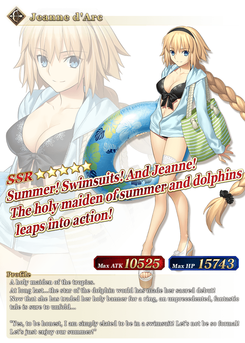 About Featured Servants: * The following Servant(s) will only be summonable from their specific summons. Please confirm the Pickup Servant before summoning. - ★5 (SSR) Astolfo (Saber) - ★5 (SSR) Jeanne d'Arc (Archer) - ★5 (SSR) Kama (Assassin) - ★5 (SSR) Semiramis - ★5 (SSR) Amakusa Shirou - ★5 (SSR) Sessyoin Kiara (Alter Ego) - ★5 (SSR) Abigail Williams - ★4 (SR) Frankenstein (Saber) - ★4 (SR) Mordred (Rider) * The following Servant(s) will not be added to Story Summon after the Pickup Summon period ends. - ★5 (SSR) Astolfo (Saber) - ★5 (SSR) Jeanne d'Arc (Archer) - ★5 (SSR) Kama (Assassin) - ★5 (SSR) Semiramis - ★5 (SSR) Amakusa Shirou - ★5 (SSR) Sessyoin Kiara (Alter Ego) - ★5 (SSR) Abigail Williams - ★4 (SR) Frankenstein (Saber) - ★4 (SR) Mordred (Rider) * The following Servant(s) will continue to be available through Story Summon after the Pickup Summon period ends. - ★4 (SR) Siegfried - ★4 (SR) Atalante - ★4 (SR) Chiron - ★4 (SR) Astolfo (Rider) - ★4 (SR) Frankenstein (Berserker) * Servants added to Story Summon through story progression will not be summonable. Please be sure to confirm the lineup before summoning.