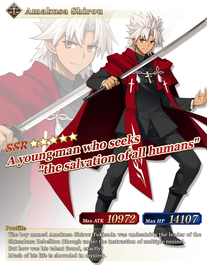 * The Spiritron Dress will change the appearance and some voice lines for "★5 (SSR) Amakusa Shirou".