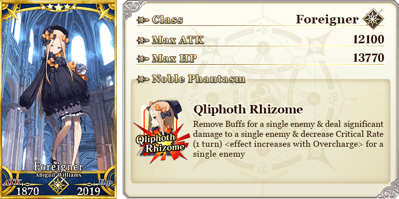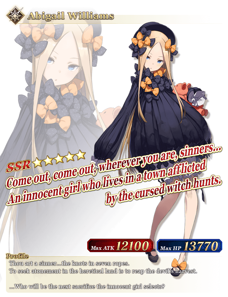 * The Noble Phantasm animation for "★5 (SSR) Abigail Williams" will change with Ascension Level.