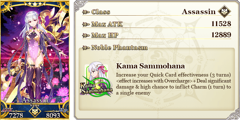* The Noble Phantasm name and animation for "★5 (SSR) Kama (Assassin)" will change with Ascension Level.