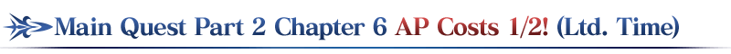During the period below, Part 2 Chapter 6 Main Quest AP costs will be halved for a limited time! (AP costs will be 1/2 even if you withdraw from a battle)