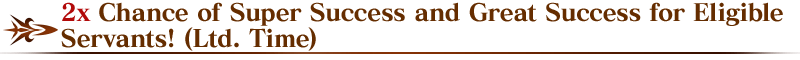 For the following period, the chance of Super Success (double EXP acquired) and Great Success (triple EXP acquired) when performing Enhancement on Servants with new Interludes will be doubled for a limited time!