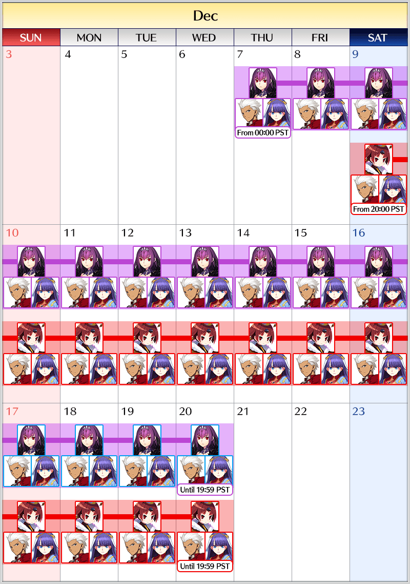 * Bonus Summons will be calculated separately for each Summon Lineup. * Please note that the Summon Period for each Pickup Summon will differ. * In this Summon, only the Pickup ★5 (SSR) Servant in each individual Summon will be eligible for the "Guaranteed Summon" feature.