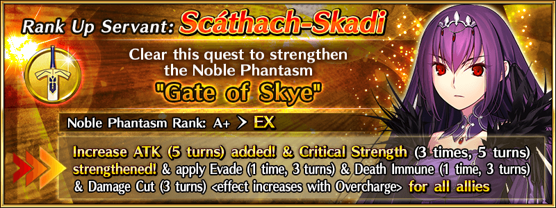 A special "Servant Rank Up Quest" to strengthen "★5 (SSR) Scáthach-Skadi" will be permanently added to Chaldea Gate.