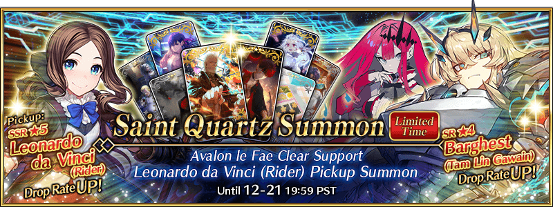 - Avalon le Fae Story Clear Support Leonardo da Vinci (Rider) Pickup Summon