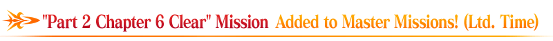 During the period below, a Limited Time "[Story Clear Support Campaign: Part 4] Mission" for Part 2 Chapter 6 will be added to the "Ltd. Time" tab on the "Master Missions" screen.