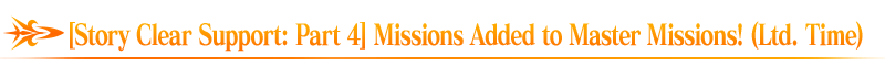 During the period below, Limited Time "[Story Clear Support Campaign: Part 4] Missions" will be added to the "Ltd. Time" tab on the "Master Missions" screen.