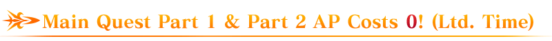 During the period below, Main Quest Part 1 & Main Quest Part 2 AP costs will be reduced to 0!