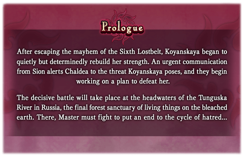 - The Prologue and Epilogue of "Anti-Primate Biosphere, Tunguska Sanctuary" will continue to be playable after the Event Period ends.