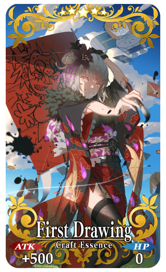 ★★★★★SSR First Drawing ATK 500 (MAX: 2000) HP 0 Skill Increase Buster Card effectiveness by 8% & begin battle with NP charged at 40% for yourself + Gain 12 C. Stars when entering the battle (1 time) |