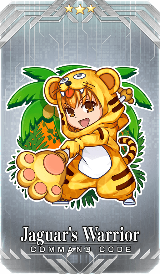 ★★★R Jaguar's Warrior Skill Remove 1 NP Strength Up state on a single enemy when attacking with the engraved Card + Increase the engraved Card's Critical Strength by 5% |