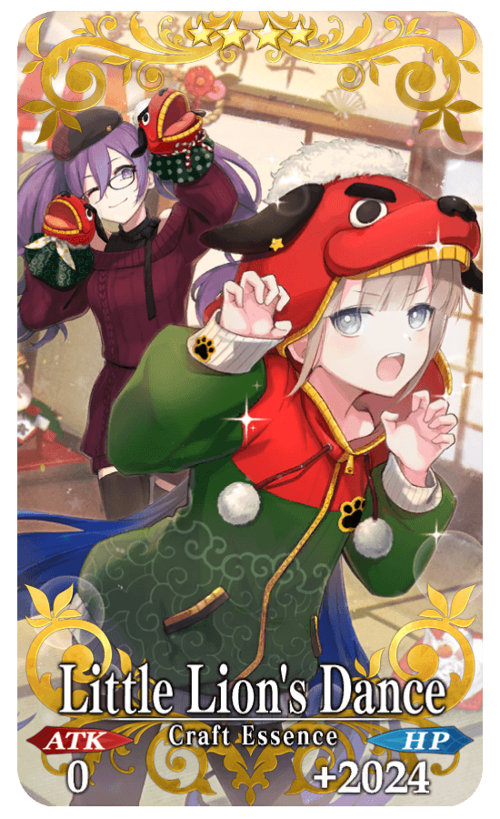 ★★★★SR Little Lion's Dance ATK 0 HP 2024 (MAX: 2024) Skill Increase your NP Gain by 15% |