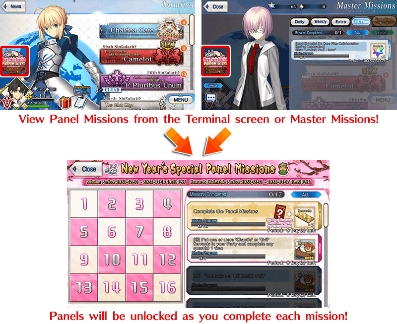 "New Year's Special Panel Missions" will be available for a limited time during the below period.
