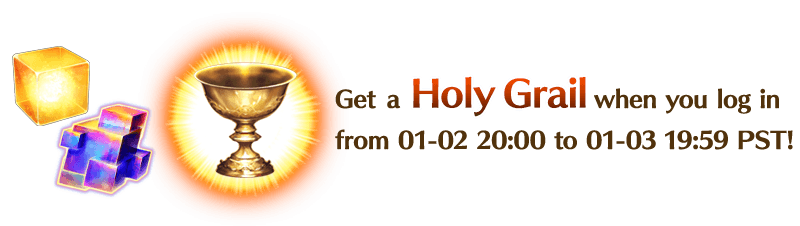 This year's login bonuses include one Holy Grail as the login bonus distributed from 2024-01-02 20:00 PST (GMT -8)!