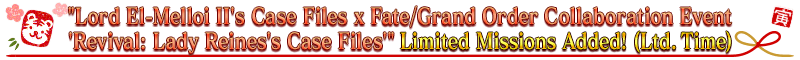 ■"Lord El-Melloi II's Case Files x Fate/Grand Order Collaboration Event 'Revival: Lady Reines's Case Files'" Limited Missions Added! (Ltd. Time)
