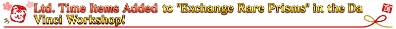 ■Ltd. Time Items Added to "Exchange Rare Prisms" in the Da Vinci Workshop!