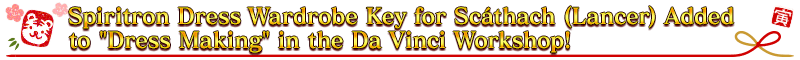 ■Spiritron Dress Wardrobe Key for Scáthach (Lancer) Added to "Dress Making" in the Da Vinci Workshop!