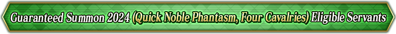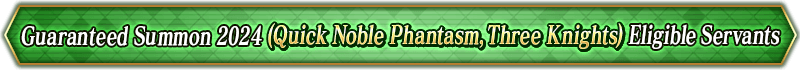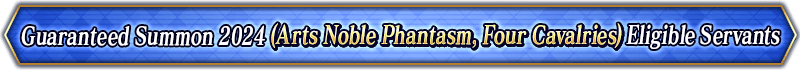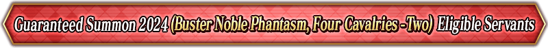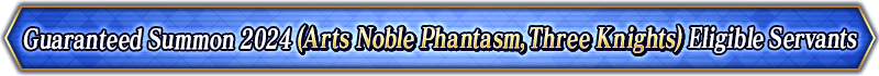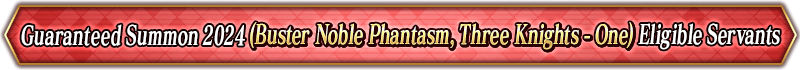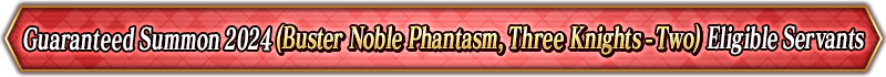 * For the "Guaranteed Summon 2024 (Noble Phantasm Type Specific)", the only Servants summonable will be those that are listed for each individual Summon.