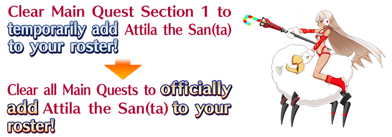 You can officially add "★4 (SR) Attila the San(ta)" to your roster by clearing the entire Main Quest of this Main Interlude.