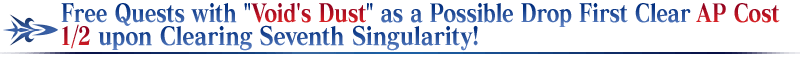 For Masters that meet the requirements, First Clear AP costs will be halved for a limited time for Free Quests in which Skill Enhancement and Ascension Material "Void's Dust" is a possible drop! (AP costs will be 1/2 even if you withdraw from battle)