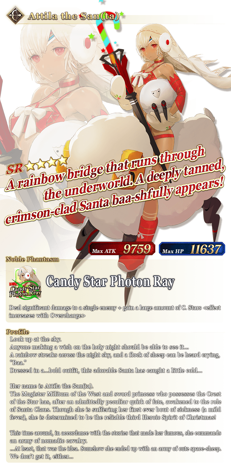 See "★4 (SR) Attila the San(ta)" in action on YouTube, where we're sharing an exclusive video of her Noble Phantasm!