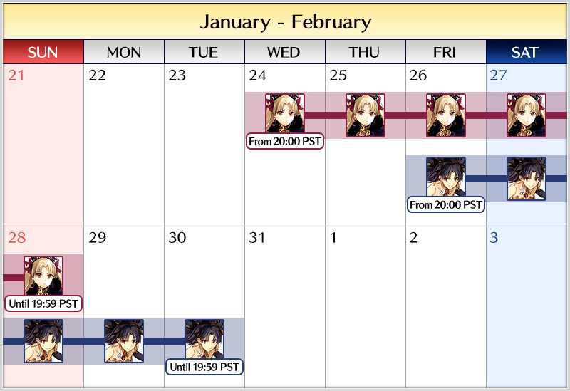 - If multiple Limited Time Pickup Summons are available at once, the number of summons you have performed will be counted individually for each Pickup Summon (each page on the Summon Screen). In addition, summons will be counted individually for each Summon Period that the Pickup Lineup changes for a Daily Pickup Summon. For example, in a Daily Pickup Summon where the Pickup Lineup changes each day at 20:00 PST (GMT -8), your summon count will be reset at the moment the Pickup Lineup changes.