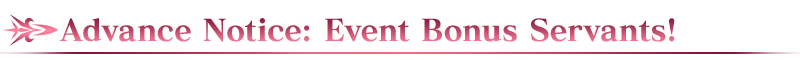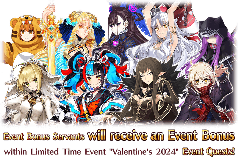 The following Servants will receive an Event Bonus within Event Quests during the Limited Time Event "Valentine's 2024".