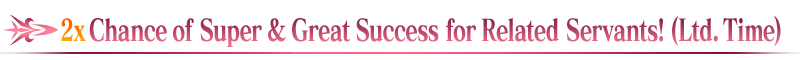 For Servants related to "Valentine's 2024", the chance of Super Success (double EXP acquired) and Great Success (triple EXP acquired) when performing Enhancement will be doubled during the period below!